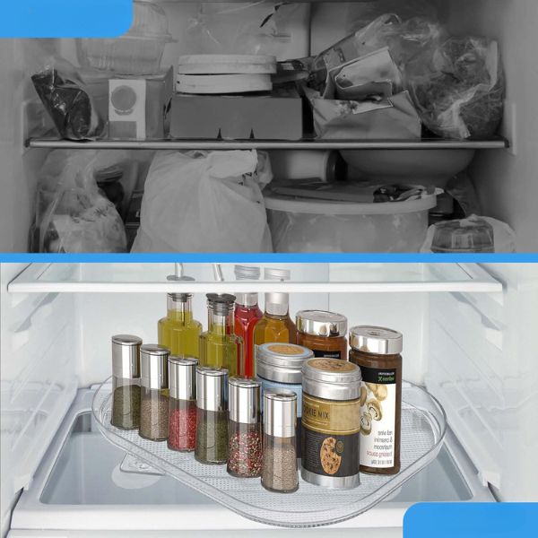 Máte už dosť preplnenej chladničky? SPINTRAY udrží vašu chladničku usporiadanú a bez neporiadku, čo vám umožní nájsť to, čo potrebujete, bez toho, aby ste sa museli prehrabávať v hromadách potravín. Vďaka plynulému otáčaniu o 360° je všetko na dosah, čo vám ušetrí čas a frustráciu.
