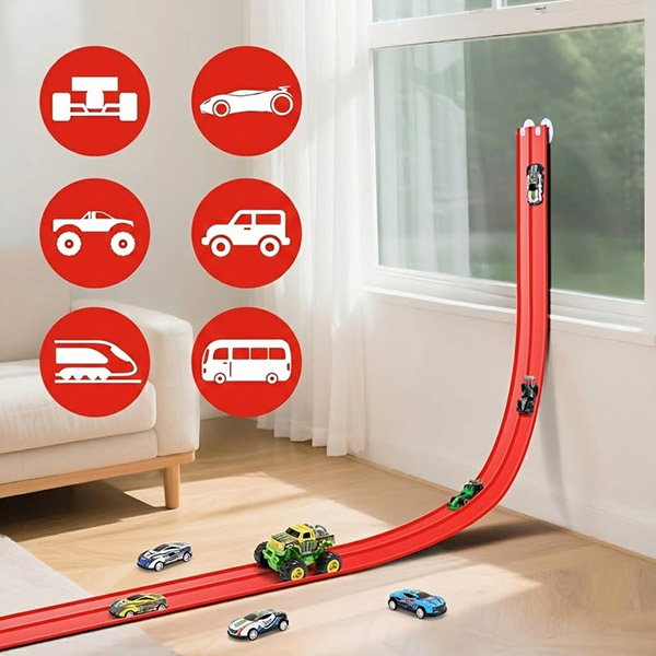 Deti môžu tvarovať dráhu pomocou bežných predmetov a vytvárať skoky, tunely a slučky, čo podporuje predstavivosť a riešenie problémov namiesto opakovanej hry. Udrží deti sústredené celé hodiny bez obrazoviek.