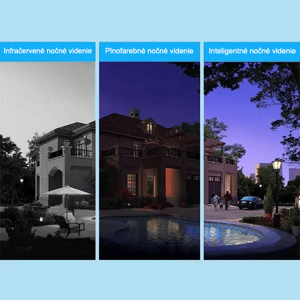 Konfiguruje 3 širokouhlé infračervené svetlá a 4 jasné svetlá LED, takže môžete nasnímať farebné nočné video aj v tme.