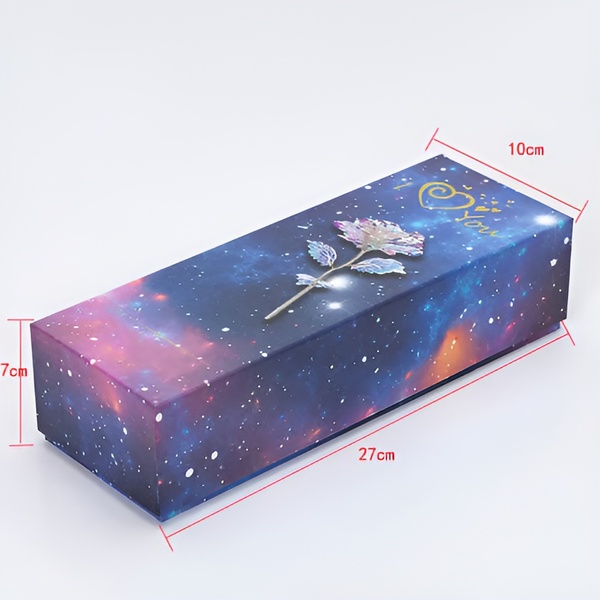 Každá ruža je vyrobená s dúhovým, holografickým povlakom, ktorý sa na svetle nádherne trbliece a vytvára trblietanie pripomínajúce galaxiu, ktoré je jednoducho fascinujúce.