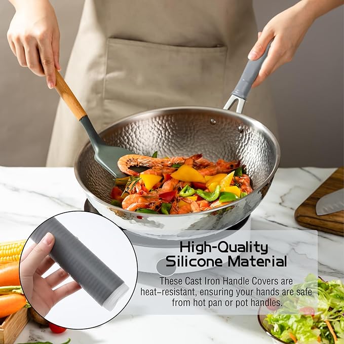 Naše silikónové kryty sú navrhnuté tak, aby boli kompatibilné so širokou škálou veľkostí rukovätí hrncov a panvíc, vďaka čomu sú univerzálnym a prispôsobivým kuchynským doplnkom, ideálnym pre liatinové panvice aj panvice s plochým dnom.