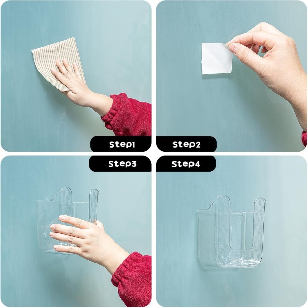 Odlepte lepiacu pásku, pritlačte na stenu, hotovo – žiadne vŕtanie, žiadne skrutky, žiadne náradie. Pevne drží na obkladačkách, natretých stenách a dvierkach skriniek.